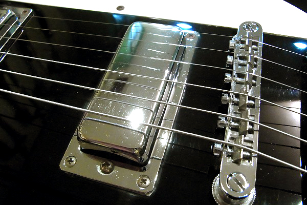 ピックアップカバー、ブリッジ、ペグなどハードウェアも丁寧に磨きを入れており、