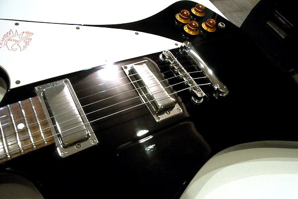 Firebirdならではのボディシェイプ、ヘッド形状、ピックガードのバードマーク、
