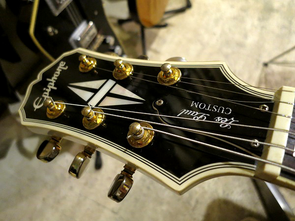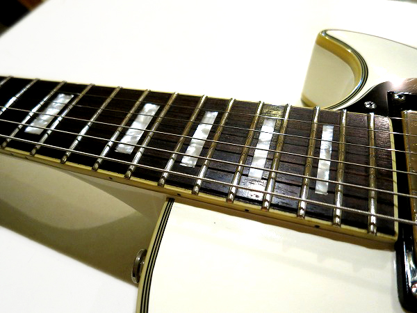 ヘッドシェイプはEpiphoneシェイプですが、ヘッドストックにはダイアモンド・インレイ、