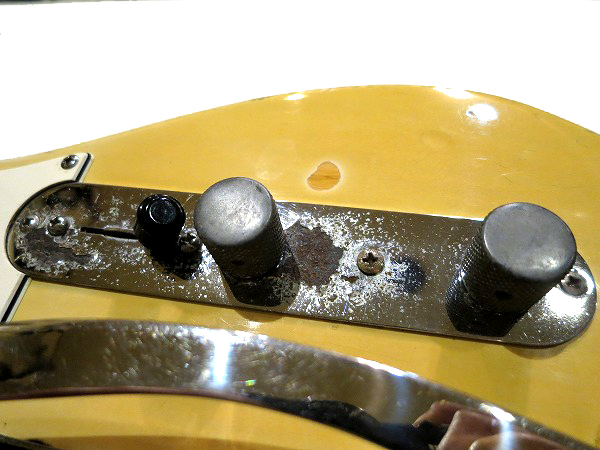 その他コントロール横にも塗装の擦れ落ち、ネック裏も多数の塗装の擦れ落ちが見られるほか、