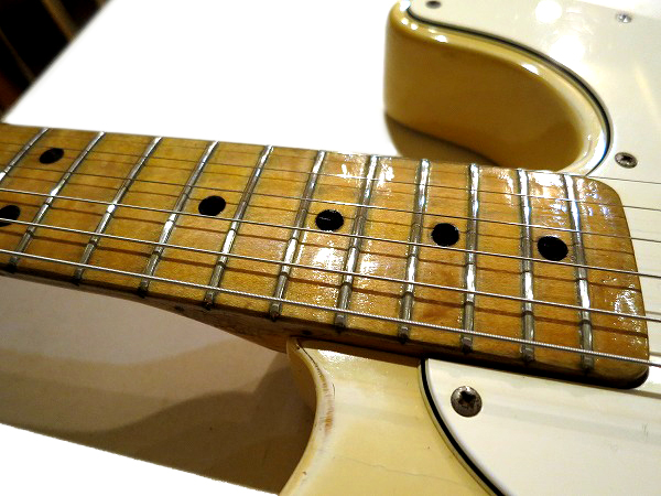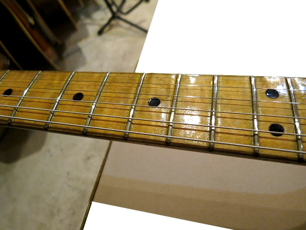 その際に指板はラッカーによる再塗装も行われており、光沢感がやや異なっています。