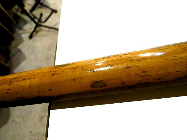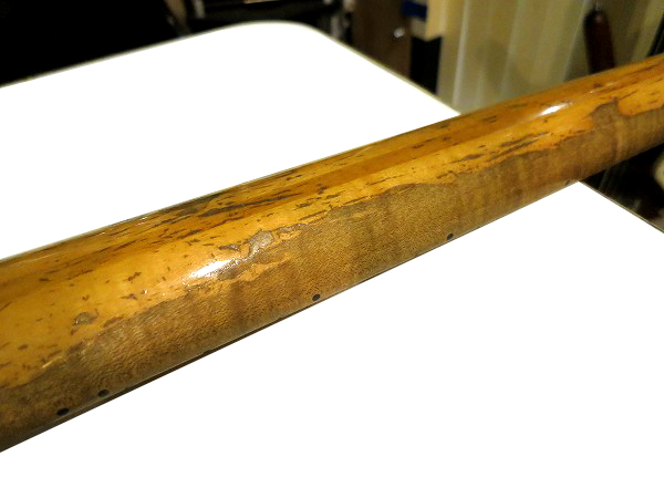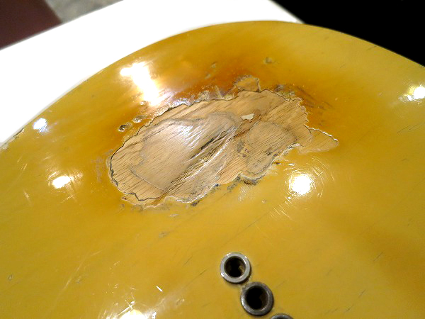 木部が見えている他、バックにやや大きな円形の塗装剥がれが見られます。