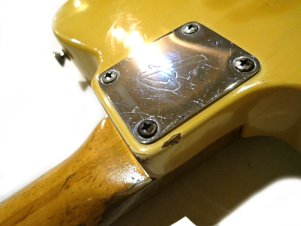 ネック裏も仕様と経年により多数の塗装擦れ落ちが見られますが、