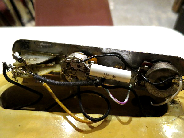 ピックアップはオリジナルのままで、リアピックアップ背面には「0505****」のスタンプがあります。