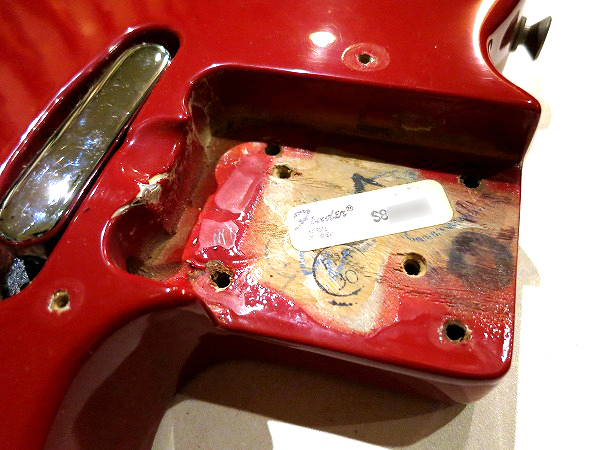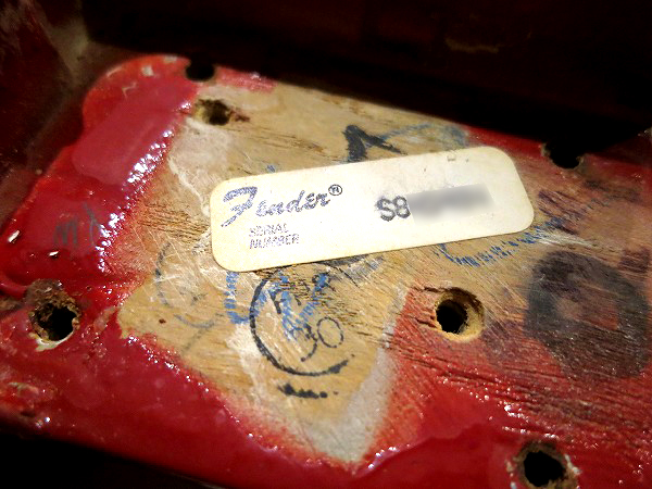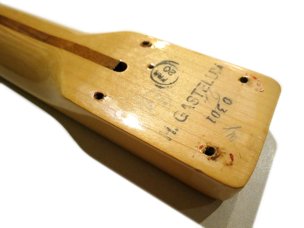 ボディのネックポケット部にもシリアルナンバースタンプ入りのステッカーが貼ってあります。