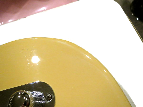 外観的にも年式を考慮するとまだまだ綺麗なコンディションを保っています。 全体的にコンパウンド、ポリッシュにより微細な小傷は消し、研磨、光沢出しを行っておりますので 塗装、ハードウェア共に光沢も大分取戻し、艶のある綺麗なコンディションになっています。 ですが、1983年製で既に37年が経過している1本でございますので、 ひどく大きな目立つダメージはありませんが、相応に傷、経年感、使用感はございます。 ボディの塗装はやや色焼けしています。 また、軽度ですが、よく見るとステッカーを貼っていた跡が 色やけせず薄く残っている部分がブリッジ下とショルダー部分にあります。 軽度でよく見ないと分からない程度です。 その他ボディサイドバック側のエッジ部分に少々大きめの塗装剥がれがある他、 全体的に小さな打痕、擦り傷、小さな塗装剥がれはありますが、 大きなひどく目立つダメージは無く、年式を考慮するとまだまだ綺麗なコンディションを保っています。