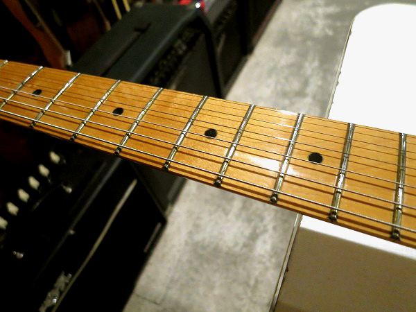 3*****」です。 フレットはヴィンテージタイプよりも少し太めのミディアム・ジャンボ・フレットで、 安定したピッチと演奏性、豊かなサステインを提供します。 指板アールもゆるやかで、非常に弾きやすく演奏性も高いです。 ブリッジは独立式の6サドルタイプで、各弦のオクターブ調整、弦高調整が可能です。 ロッドはヘッド側の調整口で、調整がしやすく、