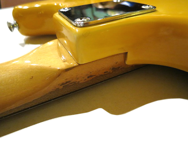 ネック裏も小さな打痕や塗装剥がれが多数ございますが、