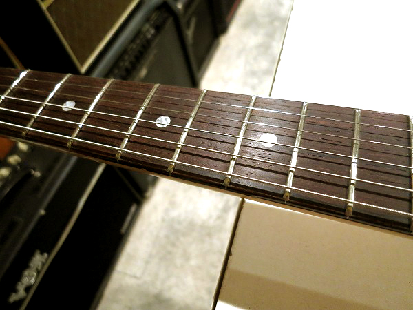 コンディションは、あまり大きな使用感の無い極上コンディションです。 ネックはロッド調整済みで、反りも無く真っ直ぐで良好な状態に調整済です。 ロッドはまだ十分に余裕がありますので、今度の調整にも対応します。 フレットもほとんど減りは無く、10割がた残っています。 へこみや弦溝も一切ありません。 さらに丁寧に磨きも入れ、さらに光沢のある綺麗な極美品コンディションになっています。 指板も減りや傷もほぼ一切無く、極上コンディションです。 指板もさらに丁寧にクリーニングの上、コンディショニングも行っておりますので、 さらに綺麗で良好な極美品コンディションになっています。 ナット、ブリッジ溝も大きな減り一切ありません。 ブリッジサドル弦高調整ビス、オクターブ調整ビスも、動作上の問題ももちろん一切無く 極美品コンディションです。 全体的にあまり使用感の無い極上コンディションで、 さらにしっかりとメンテナンス、セットアップも施しておりますので、 弦高はローアクションで弾きやすく、ビビリやつまりも無く、良好な出音です。 現在弦高は12フレット上1弦1.5mm、6弦1.5mmです。 電気系統も各部メンテナンス、チェック済です。 こちらも出音、各コントロール共に全て良好で問題ありません。 極上コンディション品をさらにきちんとセッティング、メンテナンスした状態で、