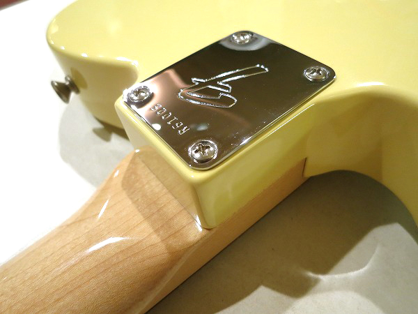 スティール・サドルです。 ペグはFキーで、ヘッドストックにはこちらもこの年代の特徴である、金縁に黒文字のモダンロゴです。 65年以降の、いわゆるCBSロゴです。非常に格好良いです。 ピックガードはホワイトの3プライ、 カラーはエイジド・ヴィンテージ・ホワイトで、ややイエローがかったホワイトの色味を再現、 非常にヴィンテージライクで抜群のルックスです。 塗装はもちろん極薄のニトロセルロース・ラッカー・フィニッシュで、 鳴り、抜けの良さも抜群、乾いたトーンでヴィンテージライクなトーンにさらに一役買っています。 ピックアップも当時を再現した、ヴィンテージ