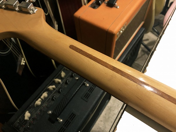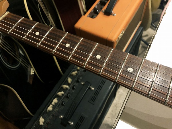 全体的にしっかりとメンテナンス、セットアップを施しておりますので、弦高はローアクションで弾きやすく、ビビリやつまりも無く、各ポジション良好な出音です。現在弦高は12フレット上1弦1.5mm、6弦2mmのローアクションで弾きやすいです。電気系統も各部メンテナンス、チェック済です。出音、各コントロール共に全て良好で問題ありません。ペグ動作も問題無く、良好なコンディションです。プレイコンディションは良好で、さらに調整、セットアップ済の良好なグッドプレイコンディションです。