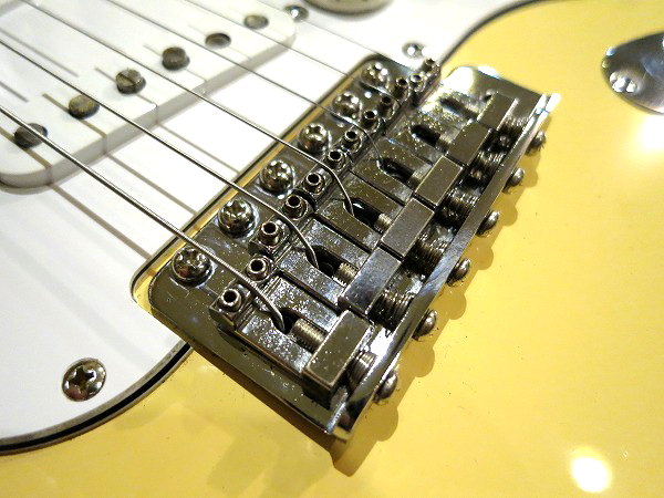 ブリッジは6点止めシンクロナイズド・トレモロ、サドルはダイキャスト・ブロックサドル、