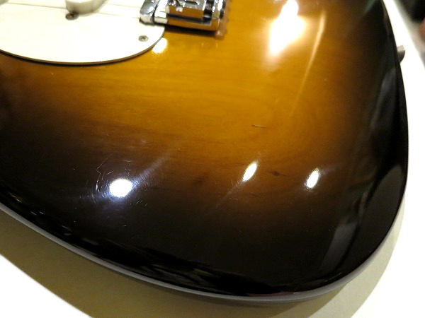 ヘッド先端部分と6弦ペグ下のエッジ部分には、タバコの焼け焦げが付いており、
