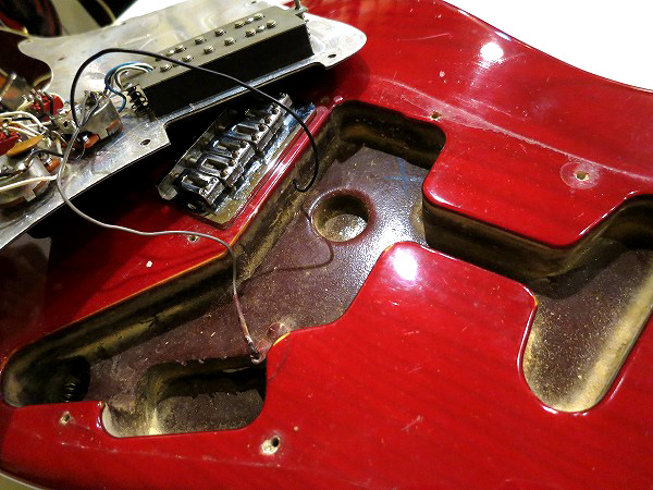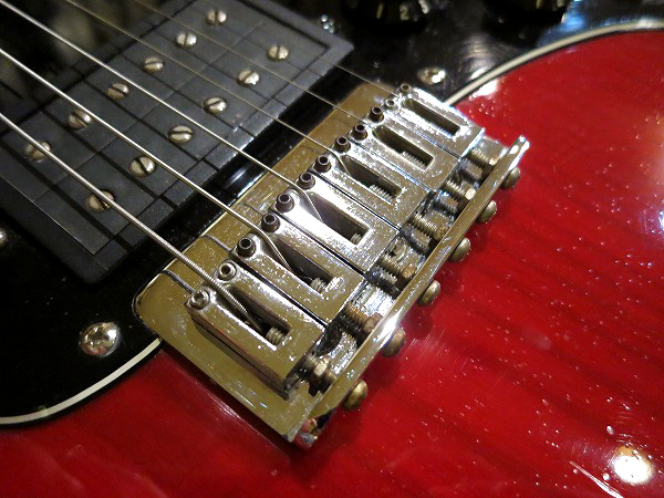 ブリッジはノントレモロのハードテイル仕様で、弦は裏通しです。