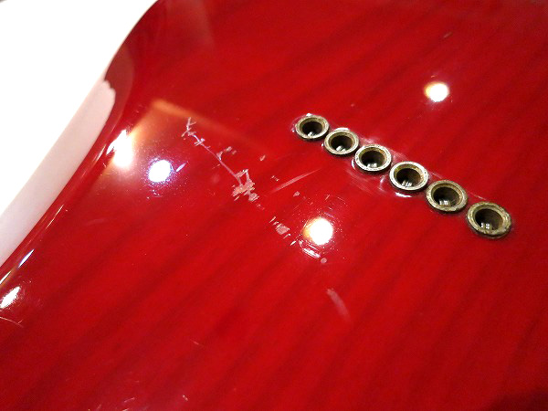 指板も相応に使用感はあり、若干の傷、エッジ部分には小さな塗装剥がれも見られますが、