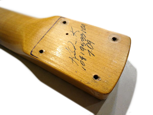 ヘッド裏にはマーク・ケンドリック氏のサイン(印刷)とカスタムショップロゴも入っています。