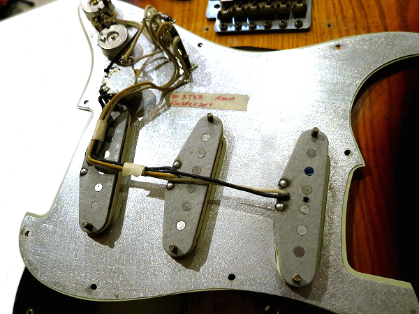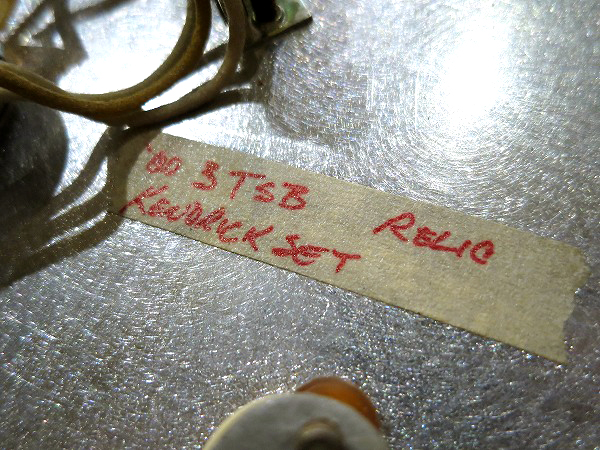 ピックガード裏には「'60 3TSB RELIC KENDRICK SET」と書かれたテープも貼ってあります。