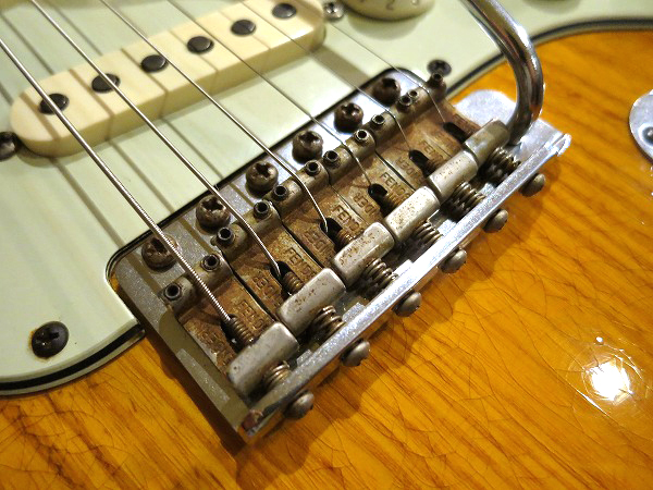ブリッジサドル部にはレリック加工が施されており、錆つきの加工が施されており、
