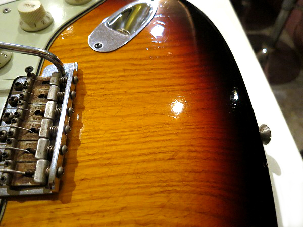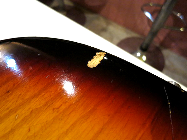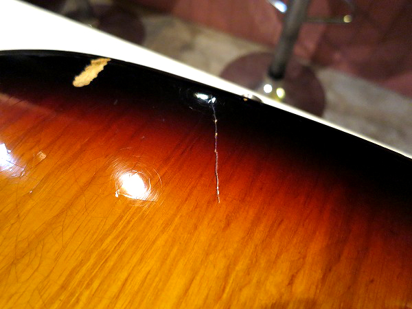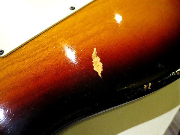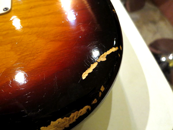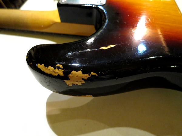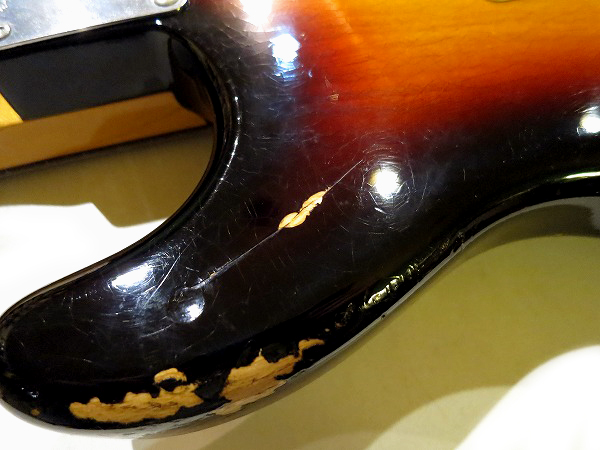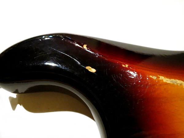 ネック裏は弾きこまれた塗装の擦れ落ち、ブリッジサドルやペグ、ビスの錆びつき、