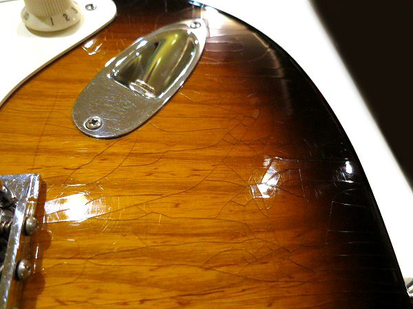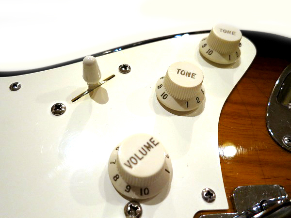 ピックガード、ピックアップ・カバー、ノブは大きなエイジング加工は施されていません。