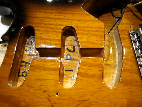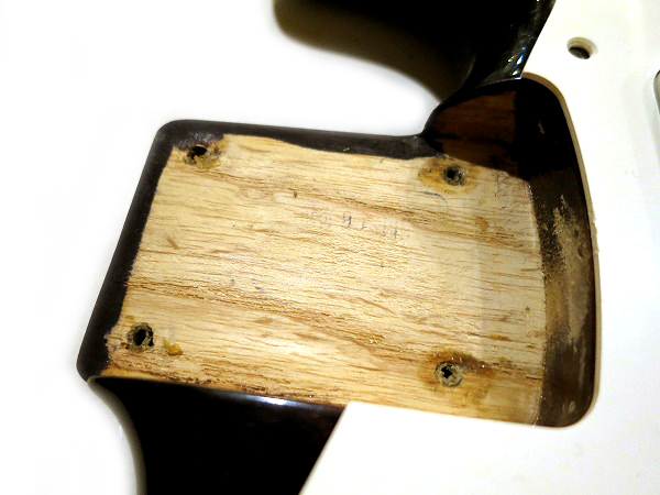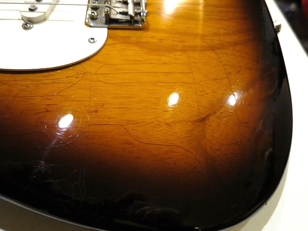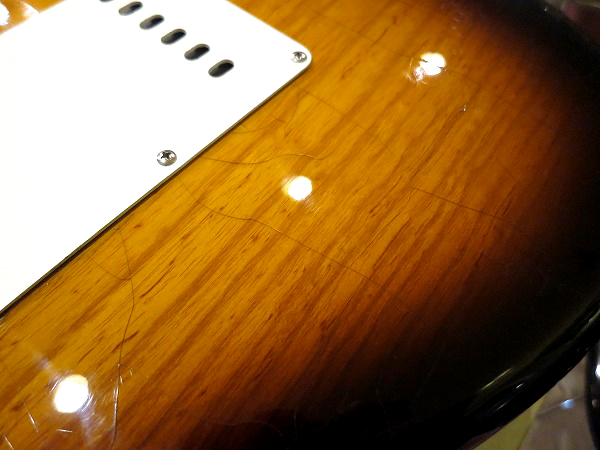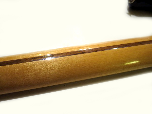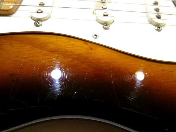 その他、非常に軽度ですが、ネック裏にスタンドとの接触による塗装の落ちがあります。