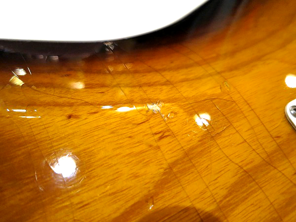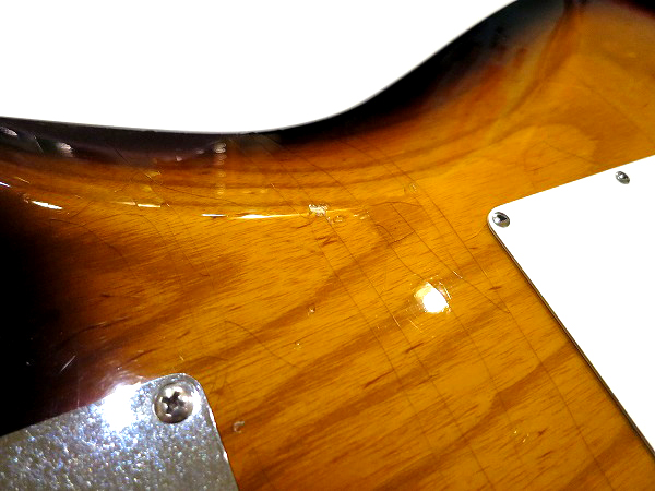 ボディのコンター加工側のサイド部分に、打痕とそれに伴う塗装剥がれがあります。