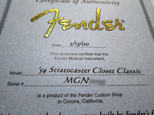 1. Fender Custom Shop 鑑定書