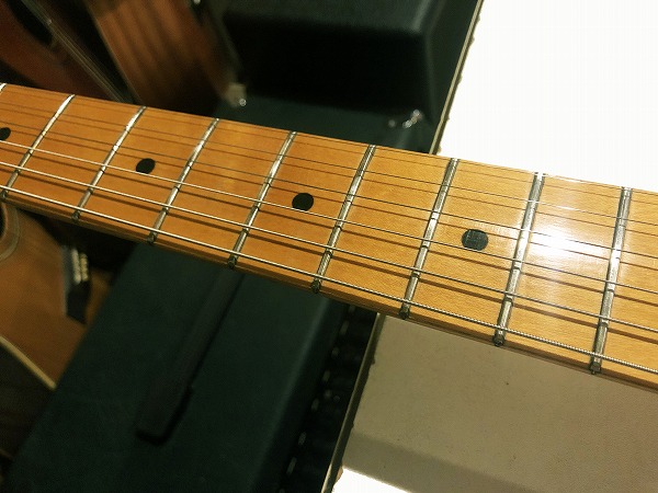 全体的にしっかりとメンテナンス、セットアップを施しておりますので、弦高はローアクションで弾きやすく、ビビリやつまりも無く、良好な出音になっています。現在弦高は12フレット上1弦1.2mm、6弦1.5mmです。電気系統も各部メンテナンス、チェック済です。出音、各コントロール共に全て良好で問題ありません。ペグ動作も問題無く、良好なコンディションです。プレイコンディションは非常に良好で、さらに調整、セットアップ済のグッドプレイコンディションです。