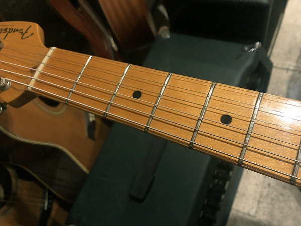 プレイコンディションは良好です。ネックはロッド調整済みで、反りも無く真っ直ぐで良好な状態に調整済です。ロッドはまだ余裕がありますので、今後の調整にも対応します。フレットは相応に減りは見られ、6分〜7分程度の残り、軽度のへこみも見られますが、大きなへこみや弦溝も無く、ローアクションセッティング可能で弾きやすく、各ポジション出音も良好です。フレットも丁寧に磨きを入れており、光沢も取り戻し綺麗なコンディションになっています。指板も相応に小傷、使用感はありますが、大きな減りやダメージは無く、丁寧にコンディショニングも行っておりますので綺麗で良好な状態になっております。ナットも大きな減りなく良好なコンディションです。ブリッジ高さ調整ビス、オクターブ調整ビスなども動作良好で問題ありません。