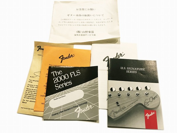 コンディションも良好です。プレイコンディション良好で丁寧に各部メンテナンス、調整、セットアップも施しており、弦高もローアクションで弾きやすく、出音も全て良好の、非常に良好なプレイコンディションです。外観的に相応に軽度の小傷や使用感、経年感はあるものの、大きな目立つダメージも無く、傷自体も少なく、年式を考慮するとまだまだ美品と言って良いグッドコンディションです。丁寧に徹底的にクリーニング、磨きも入れております。ケースは純正ハードケースが付属します。その他ブリッジカバー、当時保証書、当時付属書類、Fenderストラップも付属します。コンディションに関しては下記にさらに詳しく記載しておりますので、そちらをご参照下さいませ。