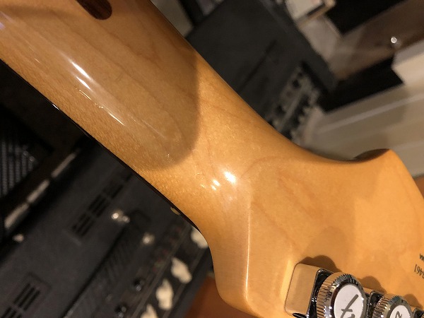 外観的にも、非常に美品と言って良いグッドコンディションです。さらに全体的に徹底的にクリーニング、磨きも行っております。目立った打痕や塗装剥がれや大きなダメージは無く、極美品と言って良いコンディションですが、ネック裏に小さな打痕傷が2ヶ所あります。触ると軽度のへこみは分かりますが、もちろん演奏上問題となるようなものではございません。それ以外は微細のヘアライン程度の使用傷、小傷程度で、目立った大きな傷は一切無く、傷自体も少なく、塗装やハードウェアの光沢もピカピカで、極美品と言って良いグッドコンディションです。純正ハードケース、各種付属書類、ロックピン、調整用レンチ、アームバーも付属します。