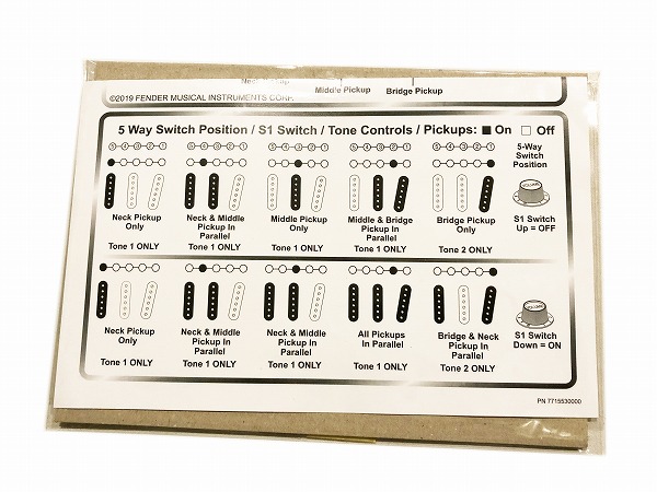 Lever SW(ピックアップ・セレクター)、1Vol、2Tone加え、S1スイッチを搭載、このスイッチを押す事でフロントピックアップを常時ONに出来、例えば従来不可能であった、リア+フロントの組み合わせも可能で、玉のような粒立ちの良いトーンも可能となっています。