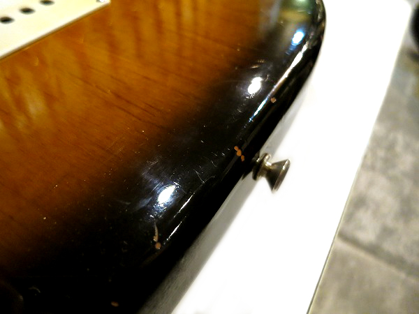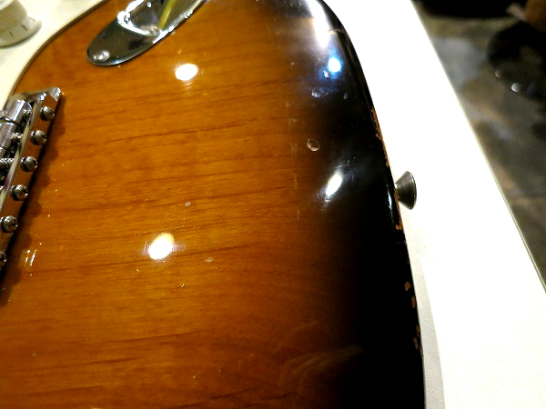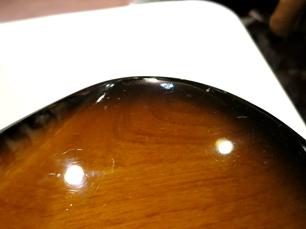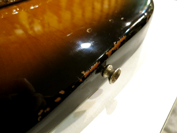 まず、ボディのエンド部やサイド、サイド近辺には多数の小さな塗装剥がれがあります。