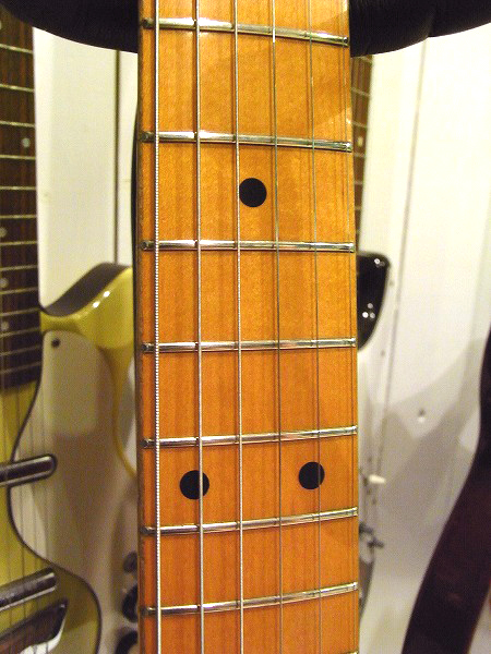 ピックガードは黒の1プライの5点止め仕様、取り付けビスは、ピックガードやピックアップ取り付け、ブリッジビス、 ネックジョイントビス、更にペグ取り付けビス、ストリングガイドやストラップピンに至るまで、 オリジナル同様全てマイナスネジ仕様、といった非常に拘りの仕様となっており、