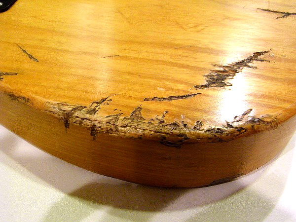 さらに、この加工を施すことにより、サウンド面でも恩恵を受けており、 元々ラッカー・トップコートのモデルですが、さらに塗装が薄く削られる事により、 非常に生鳴りが素晴らしく良く、乾いたトーンに生まれ変わっています。