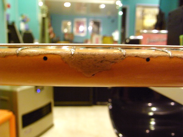 ネックは反りも無く真っ直ぐにロッド調整済で、 ロッドは適正に調整後、まだ十分に余裕のある状態ですので今後の矯正も可能です。 フレットも相応に減りはあるものの、まだ8分〜9分程度は残っており、 へこみや弦溝等も無く、まだまだ十分に使用出来る問題無い状態です。 磨きも入れておりますので、光沢も取戻し、ピカピカで綺麗なコンディションです。 現在弦高は12フレット上1弦1mm、6弦1.5mmと非常にローアクションにセッティングしています。 上記のセッティングで、各ポジション、フレットバズ(ビビリ)や音づまりも無く良好な出音です。 弦高も低く、とても弾きやすい状態です。 電気系統もチェック、清掃済で、ガリ等も無く非常に良好な状態です。