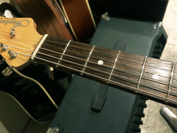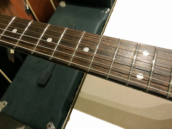 プレイコンディションは非常に良好です。ネックはロッド調整済みで、反りも無く真っ直ぐで良好な状態に調整済です。ロッドはまだ十分に余裕がありますので、今後の調整にも対応します。フレットはステンレスフレットですのでほとんど減りは無く、10割がた残っています。もちろんへこみや弦溝も無く、ローアクションセッティング可能で弾きやすく、各ポジション出音も非常に良好です。フレットは光沢もピカピカの美品コンディションです。指板も軽度の使用感程度で、大きな減りやダメージも無く、丁寧にコンディショニングも行っておりますので非常に綺麗で良好な状態になっております。ナットも大きな減りなく良好なコンディションです。ブリッジサドル高さ調整ビス、オクターブ調整ビスなども動作良好で問題ありません。