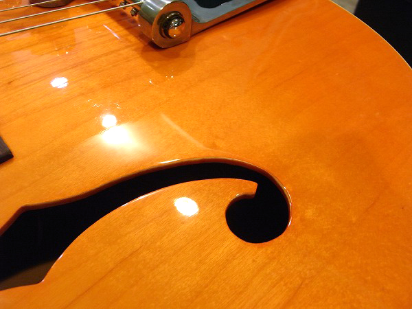 ブリッジ、テールピースなどハードウェアも丁寧に磨きも入れており、