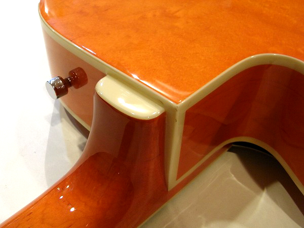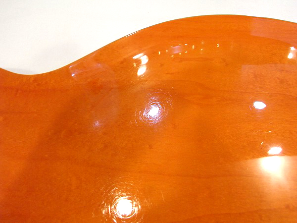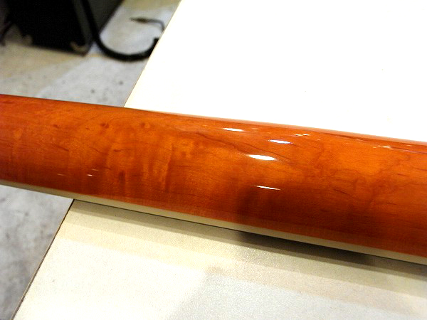 トップ、サイドは綺麗な木目のプレーンメイプルで、ところどころにバーズアイやトラ杢もうっすら入っています。