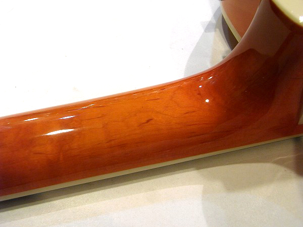 ネックもメイプルで、こちらは結構トラ杢やバーズアイの入った上質メイプルが使われています。