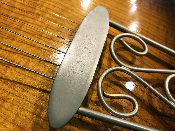 交換点としては、交換時期は不明ですが、いずれかの時期にフレットは交換されており、その際に指板修正、ネック熱矯正も行われているものと思われ、ネックは真っ直ぐで良好な状態で、ロッドもほぼニュートラルでまだ十分に余裕のある状態です。さらにご委託前にプロショップによるフレットすり合わせも行われており、フレットは大きなへこみや弦溝等も無く、光沢のある綺麗なコンディションで、ネック状態、プレイコンディションは非常に良好です。ネック起き、トップの大きな落ち込み等もありません。ナットはオリジナルかどうか不明ですが、いずれかの時期に代わっている可能性があります。ブリッジは木製の台座部分はオリジナル、ブリッジ部分はCALLAHAM