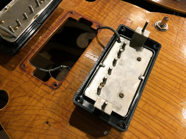ピックアップ、電装関係も全交換されています。ピックアップはWIZZ製のハムを搭載しています。モデルは完全に特定出来ませんでしたが、オリジナルPAFを忠実に再現したモデルを搭載しています。オリジナルからは交換されているものの、こちらもヴィンテージPAF再現系極上トーンのハイグレードピックアップで、トーン、フィールまでヴィンテージPAFそっくりとファン、マニアに絶賛を受けるモデルです。ポットもCTS製の新しいものが付いており、スイッチも新しいものが搭載されています。