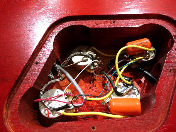 コントロールは2Vol、2Tone、3Way Lever SW(ピックアップセレクター)です。