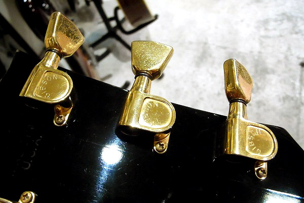 ペグも丁寧に磨き、光沢は取り戻していますが、点状のメッキ浮きの様な経年変化は見られます。