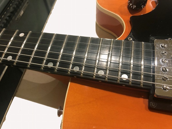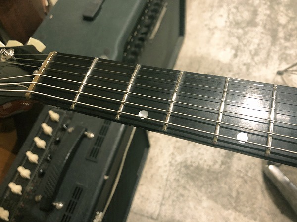 さらにしっかりとメンテナンス、セットアップも施しておりますので、弦高は非常にローアクションで弾きやすく、ビビリやつまりも無く、良好な出音です。現在弦高は12フレット上1弦1.2mm、6弦1.5mmにセッティング済です。電気系統も各部メンテナンス、チェック済です。出音、各コントロール共に全て良好で問題ありません。ペグ動作も問題無く、良好なコンディションです。各所調整・セッティング済の、弾きやすく出音良好の、非常に良好なプレイコンディションです。