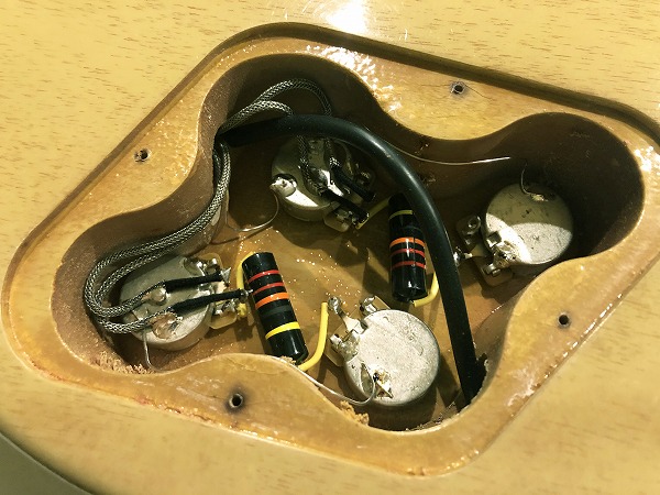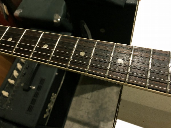 さらに全体的にしっかりとメンテナンス、セットアップを施しておりますので、弦高はローアクションで弾きやすく、ビビリやつまりも無く、良好な出音になっています。現在弦高は12フレット上1弦1.2mm、6弦1.5mmです。電気系統も各部メンテナンス、チェック済です。出音、各コントロール共に全て良好で問題ありません。ペグ動作も問題無く、良好なコンディションです。プレイコンディションは良好で、さらに調整、セットアップ済の非常に良好なグッドプレイコンディションです。