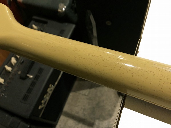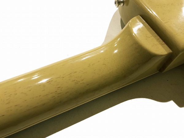 そして塗装は極薄のラッカー塗装。この塗装ももちろん抜群の本体の鳴り、抜けの良さ、乾いたトーンに影響しています。カラーは一番人気のTVイエロー。このカラーは当時、白黒テレビでも映える様にと考えられたカラーで、通常の黄色よりもややくすんだカラーの、中間色的なイエローとなっています。さらにフィニッシュはVOS(ヴィンテージ・オリジナル・スペック)仕様で、予め光沢感がやや落とされ、細かな擦り傷、使用感、経年感が再現されており、落ち着いた質感とリアルな経年と使用感の雰囲気が抜群で、ルックス的にも最高です。
