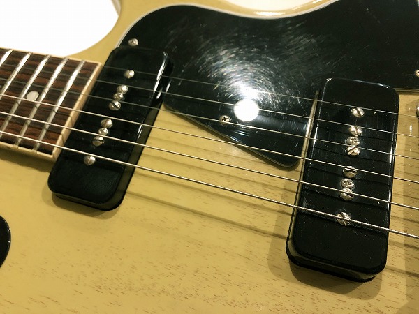 ピックアップはP-90を2発搭載。コントロールは2Vol、2Toneです。P-90はシングルコイル・ピックアップならではのジャキっとしたエッジの立ったトーン、キレの良さ、シャープさ、抜けの良さも持ちながら、ハムのような甘く太くコシのあるサウンドで、シングルとハムのいいとこ取りのサウンドを持っていると言われています。またピッキングニュアンスのレスポンスもとても良く、食いつき感、バイト感もとても気持ち良いです。そのP-90ピックアップのサウンドと、本体の素晴らしいサウンド、鳴り、トーンとのマッチングで、タイトでほど良いレスポンス、豊かなサステイン、マホガニーの質感のある音色、甘く太いサウンドながら、輪郭、粒立ちも良く、ハイ、エッジも立ったジャキっとしたトーンの、抜群のサウンドを生み出しています。