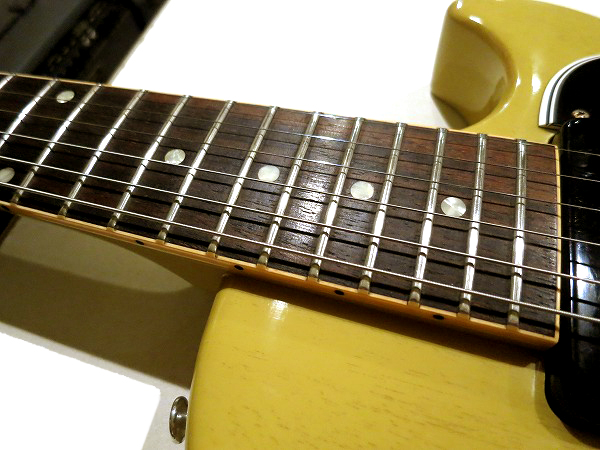 コンディションは非常に良好です。 ネックはロッド調整済で、反りも無く真っ直ぐで、良好な状態に調整済です。 ロッドはまだ余裕がありますので、今後のネック反り矯正にも対応します。 フレットも若干の使用感程度で、まだ8分程度は残っており、 大きなへこみや弦溝もありません。 ローアクションセッティングでビビリやつまりも無く、出音も良好です。 フレットは丁寧に磨きも入れており、光沢、艶のある綺麗な美品コンディションになっています。 指板も若干の使用感程度で、大きな減り、ダメージは無く、 指板も丁寧にクリーニングの上、磨き、コンディショニングを行っておりますので とても綺麗で良好なコンディションにはなっております。 ナット溝も大きな減りは無く、良好な状態です。 ブリッジ弦高調整スタッドビス、オクターブ(角度)調整ビスも固着等も無く、調整上の動作も良好です。 しっかりとメンテナンス、セットアップも施しておりますので、 弦高はローアクションで弾きやすく、ビビリやつまりも無く、非常に良好な出音となっています。 現在弦高は12フレット上1弦1.5mm、6弦1.8mmです。 ペグ動作も問題無く、緩み等もありません。 プレイコンディションは非常に良好で問題ありません。