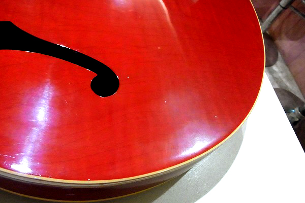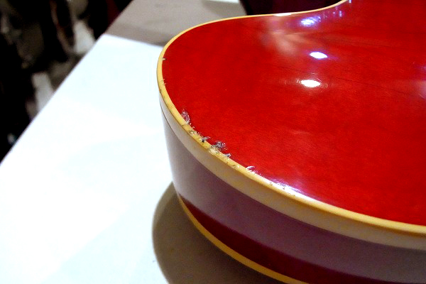 また、Gibsonは薄いラッカーによる塗装の為、使用と経年により、